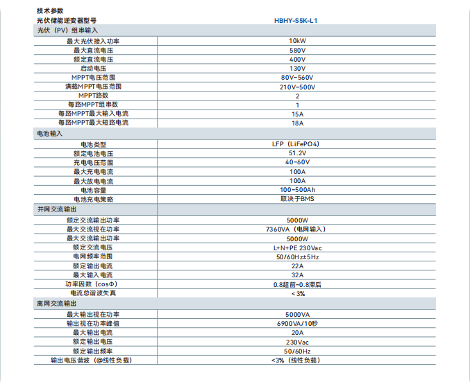 單相低壓儲(chǔ)能逆變器 (HBHY-S5K-L1)系列